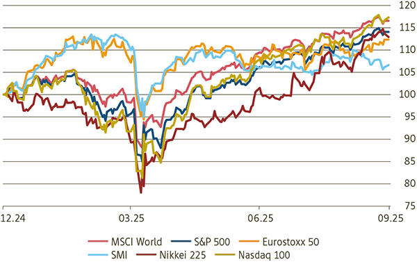 Aktienmärkte: Performance seit 1.1.2025, indexiert, in Lokalwährung