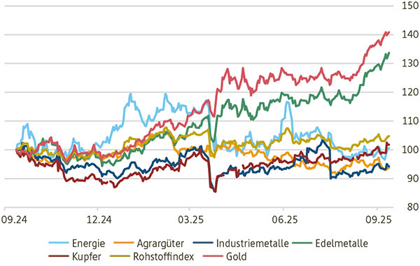 - Neben der USD-Schwäche wirkt auch die seit Jahren anhaltende preisunabhängige Nachfrage von Zentralbanken v.a. aus BRICS+-Staaten, welche sich vom US-Dollar abkehren und ins Gold diversifizieren.