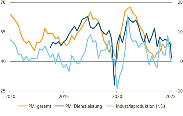 - Das zwischen den USA und der EU geschlossene Handelsabkommen mit Zöllen in der Höhe von 15% führt zu mehr Planungssicherheit. Stützend wirken zudem die höhere wirtschaftspolitische Sicherheit sowie staatliche Fiskalpakete. Dennoch wird die höhere Belastung auf Exporten in die USA im zweiten Halbjahr zu einer Wachstumsverlangsamung führen.