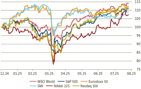 Aktienmärkte: Performance seit 1.1.2025, indexiert, in Lokalwährung