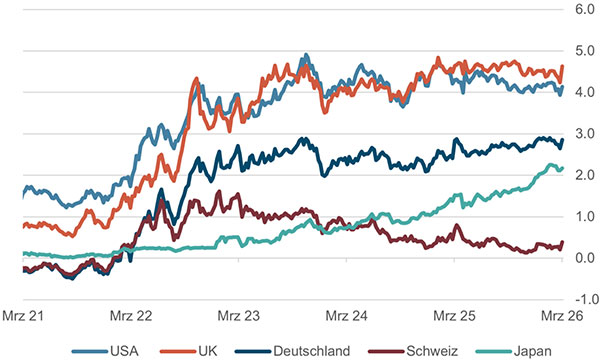 Renditen 10-jähriger Staatsanleihen in %